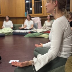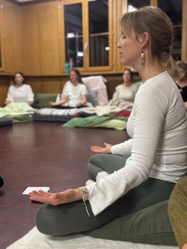 Die Location liegt in der Nähe von Basel, etwa 20 Minuten ausserhalb inmitten der Natur, umgeben von Wald und Wiese und schöner Aussicht auf das Jura. Es ist ein sehr ruhiger Ort und sowohl mit dem Auto wie auch mit den öffentlichen Verkehrsmitteln erreichbar – wir bieten jedoch auch einen Abholservice vom nahegelegenen Bahnhof aus an (falls jemand mit den ÖV anreist, organisieren wir uns meistens in der Whatsapp-Gruppe). Es gibt einen grossen, schönen Zeremonieraum im Dachgeschoss, ein heller Wohnbereich (Aufenthalt tagsüber) mit zwei grossen Bädern, einer Küche und Essbereich, Sofa/Lounge und natürlich einen grossen Aussenbereich mit mehreren Sitzplätzen und Feuerstellen. Die Zeremonien selbst finden im Zeremonieraum statt, wo wir für alle einen gemütlichen Schlafplatz einrichten, da sie jeweils von Sonnenuntergang bis Sonnenaufgang dauern.