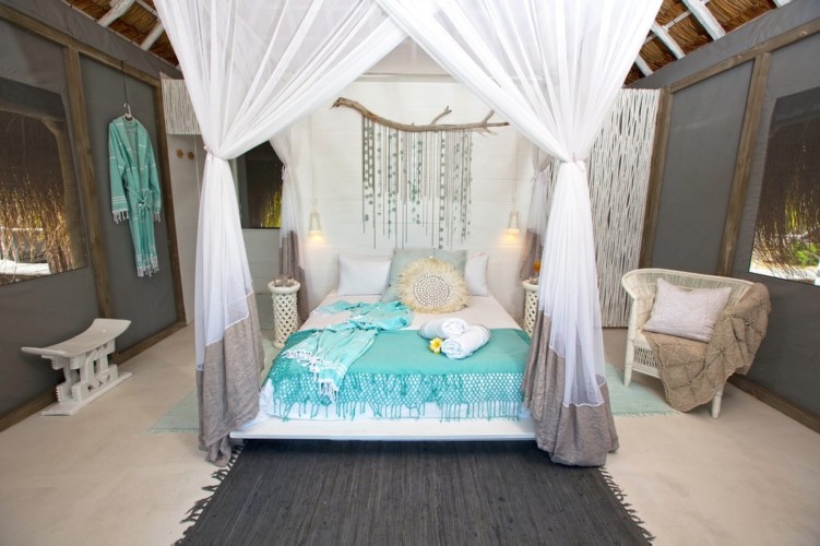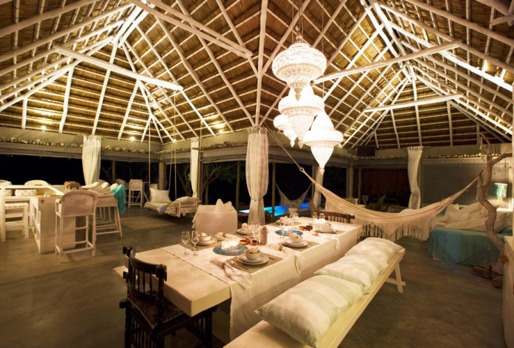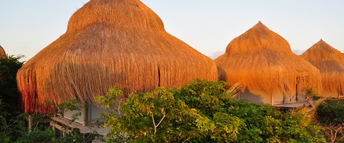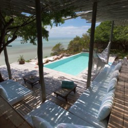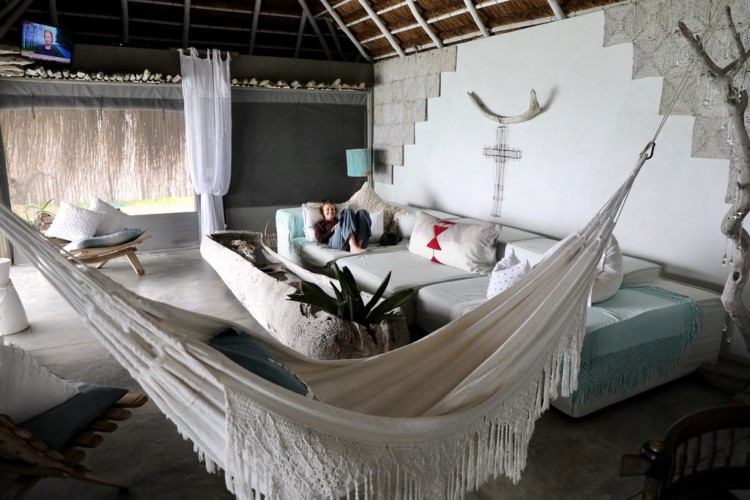 Jeden Tag Yoga, Meditation und Tiefenentspannung in den wunderschönen Azulik Logdes in Vilanculos San Sebsastian in Mosambik.