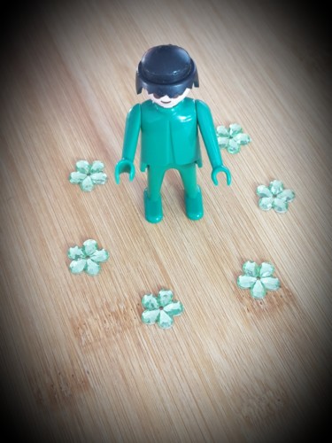 Du stellst mit ein paar eigenen Gegenstände, die du vorher für dich bereit gestellt hast, dein Scenario auf.