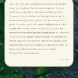 Die „Spielregeln“ für unseren Termin:Der Karriere-Navigator ist eine systematische und zielführende Coaching-Methode, um in kürzester Zeit die Aspekte der Persönlichkeit zu beleuchten, die wichtig sind, um den Beruf und die Lebensumstände zu bestimmen, die glücklich, zufrieden und erfolgreich machen können. Um dieses Ziel zu erreichen, ist ein intensives gemeinsames Arbeiten Voraussetzung. Hierbei geht es nicht darum, zu tief in bestimmte Themen einzutauchen oder gar ein „Seelenstriptease“ zu machen, sondern es geht darum, alles zu besprechen, das zum Erkennen des Ziels wichtig ist oder diesem Erkennen im Weg stehen könnte. Die Klarheit des Ergebnisses hängt ab von Deiner Offenheit und Bereitschaft, Dich auf diesen Prozess aktiv einzulassen. Das Vorgehen dabei ist spielerisch und bezieht Dein Gefühl und Deine „innere Stimme“ mit ein.