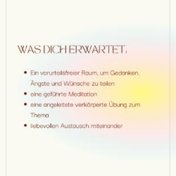 WAS DICH ERWARTET:Einen vorurteilsfreien Raum, um Gedanken, Ängste und Wünsche zu teilen