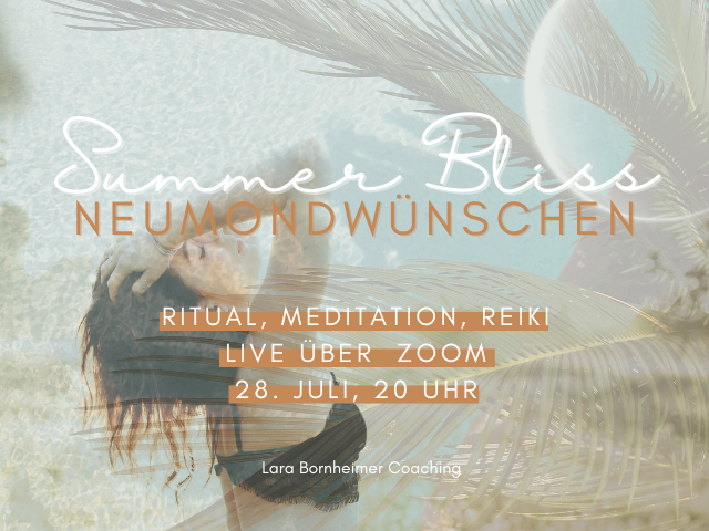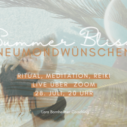 Dich erwartet ein Abend für dich und deine Seele, um ins Spüren zu kommen und einmal nur bei dir zu sein.Ein Wünscheritual, um deine Herzenswünsche für den nächsten Mondzyklus zu erspüren und ans Universum zu senden.