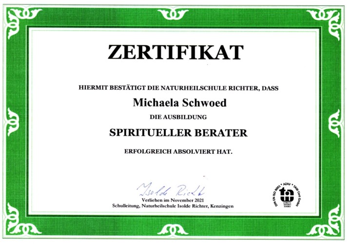 - Betreuung durch eine zertifizierte psychologische Beraterin (meine Ausbildung erfolgte an der renommierten Isolde Richter Heilpraktikerschule)