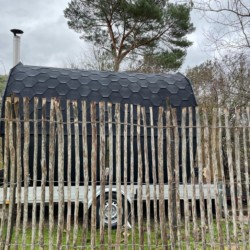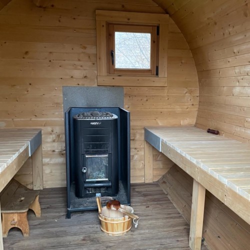 Das Naturhaus hat ausschließlich Gemeinschaftsbäder und es hat eine Holzofen-Sauna, die wir einmal während unseres Aufenthalts anheizen werden.