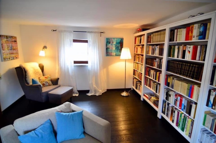 Wer die Ruhe sucht, kann z.B. im Sommer im Garten unter dem schattenspendenden Walnussbaum ruhen und lesen.