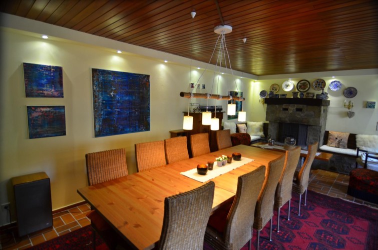 3 Duschbäder, ein großes Kaminzimmer mit offenem Kamin und eine Sauna. Natur und Wald.