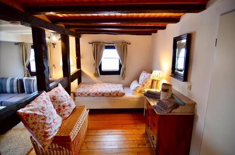 In der wunderschönen Nordeifel liegt diese mehr als 200 Jahre alte und und denkmalgeschützte Hofanlage im Herzen einer idyllischen Landschaft. Die Anlage besteht aus einem großzügigen Landhaus mit ausgebautem Stallgebäude und Scheune im historisch-modernen Stilmix. Lass dich von der reizvollen, ländlichen Umgebung der Nordeifel und dem individuellen Ambiente dieses Hauses inspirieren! Das alte Wohnhaus sowie die modern gestaltete ehemalige Scheune hat in über 400qm Gesamtfläche 5 geschmackvoll und individuell gestaltete Doppelzimmer mit drei separaten und modern ausgestatteten Badezimmern, eines davon en-Suite, mit Dusche oder Badewanne. Für besonderen Komfort verfügt jedes der Gästezimmer über einen integrierten oder zusätzlich nutzbaren Wohnbereich. Ein großer, gepflegter Garten, ein stimmungsvoller Innenhof, eine Sauna mit Ruheraum und direktem Zugang zum Kaminzimmer und zum Garten, laden sowohl zum Austausch als auch zum Entspannen ein.