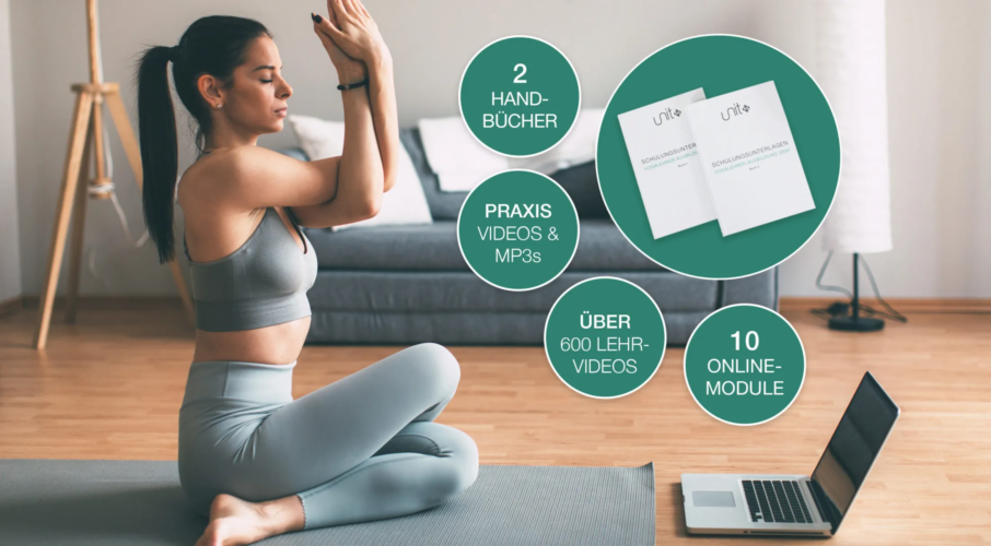Bestandteil sind über 720 Lehrvideos plus regelmäßige Zoom Calls:Dein Start – Yogatherapie +300h Online